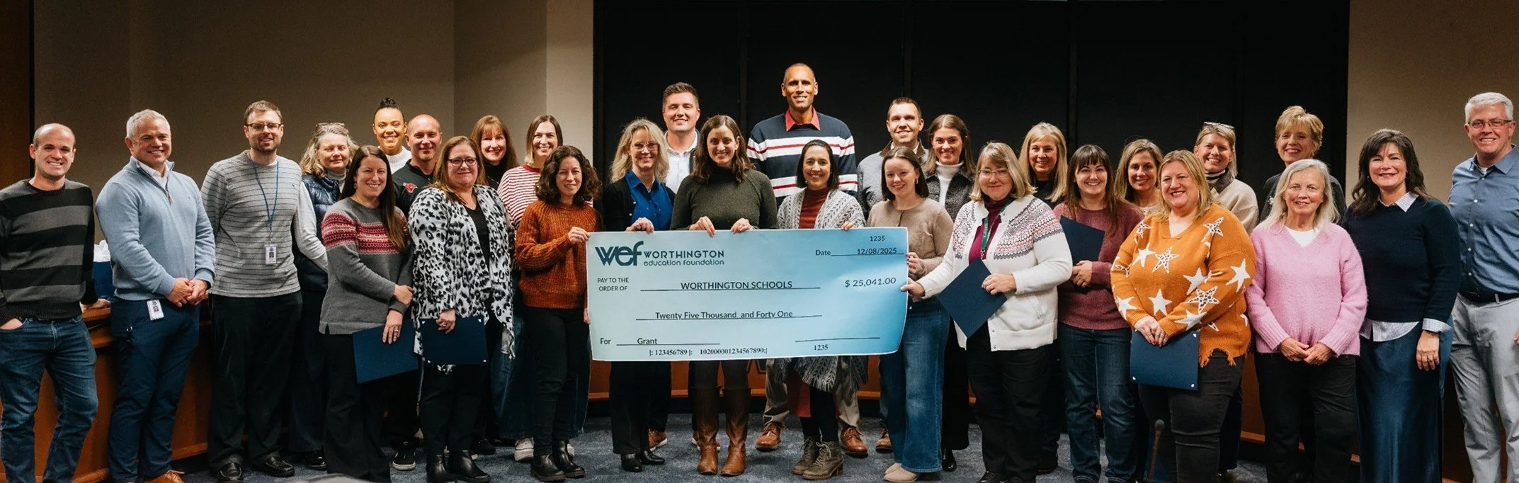 Thank you to all the Worthington Schools educators who submitted a grant application last year. We were excited to have received 21 applications across 13 schools. Our committee reviewed and scored all eligible applications and announced the winners in November 2025. Recipients received their checks totaling over $25,000 at a December Board of Education meeting, and they were featured at our annual fundraiser.
